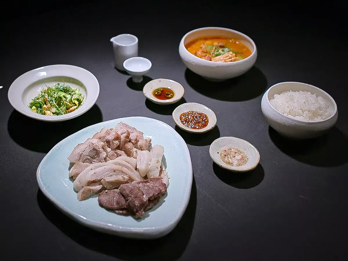 • Signature Boiled Pork (Suyuk): The secret to her pork lies in the cooking liquid. She added the clear top layer of her hand-brewed Makgeolli to boil the meat. She explained that the rich fruity notes of the alcohol infuse directly into the pork, enhancing the flavor profile. For the cut, she specifically chose pork head meat for its exceptionally chewy texture.