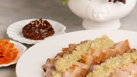 Garlic Bossam (Korean Pork Wraps): Boiled Pork Belly with Sweet Garlic Sauce