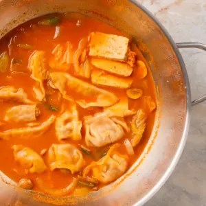 Mandu Jeongol. Spicy Korean Hot Pot with Dumplings
