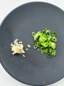 Chop green onion and mince the garlic.